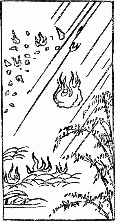 Despite being so dangerous, there are instances of onibi appearing and acting in strange ways. There is a story of an onibi that appeared above Hakone mountain which split into two before flying around, combining, and splitting again. And another that appears below the castle and above the sea in Kōchi. Just like the one above Hakone mountain, it flies around splitting and combining, and also appearing very close before flying far away. These onibi can be known as Asobibi (遊火 "play fire")